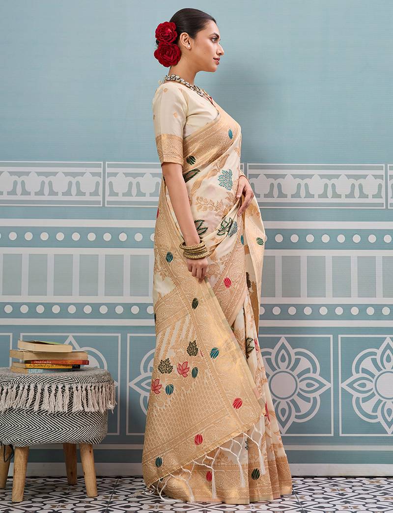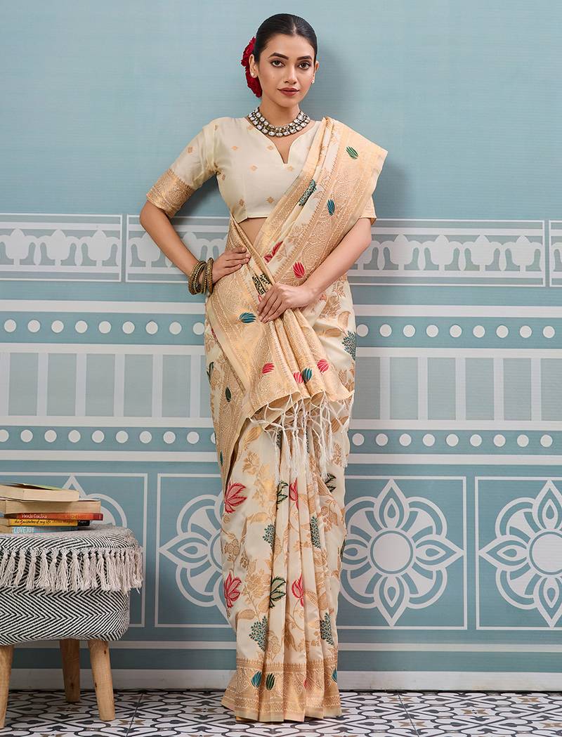 | Product Name | Cream Soft Art Silk Saree With Woven Work With Blouse | |