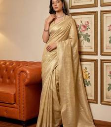 Cream woven tissue silk saree with blouse
