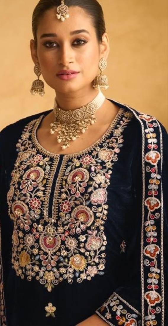 Product Name | Dark Blue Embroderied With Beads Velvet Palazzo Suit | |