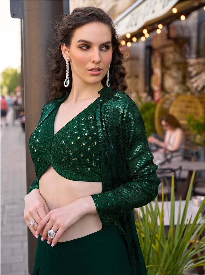 | Product Name | Dark Green Georgette Shrug Suit Full Stitched Free Size | |