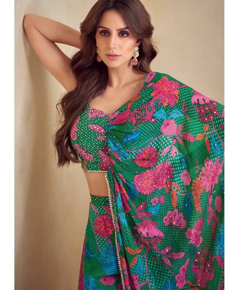 Dark green real chinon full stitched free size