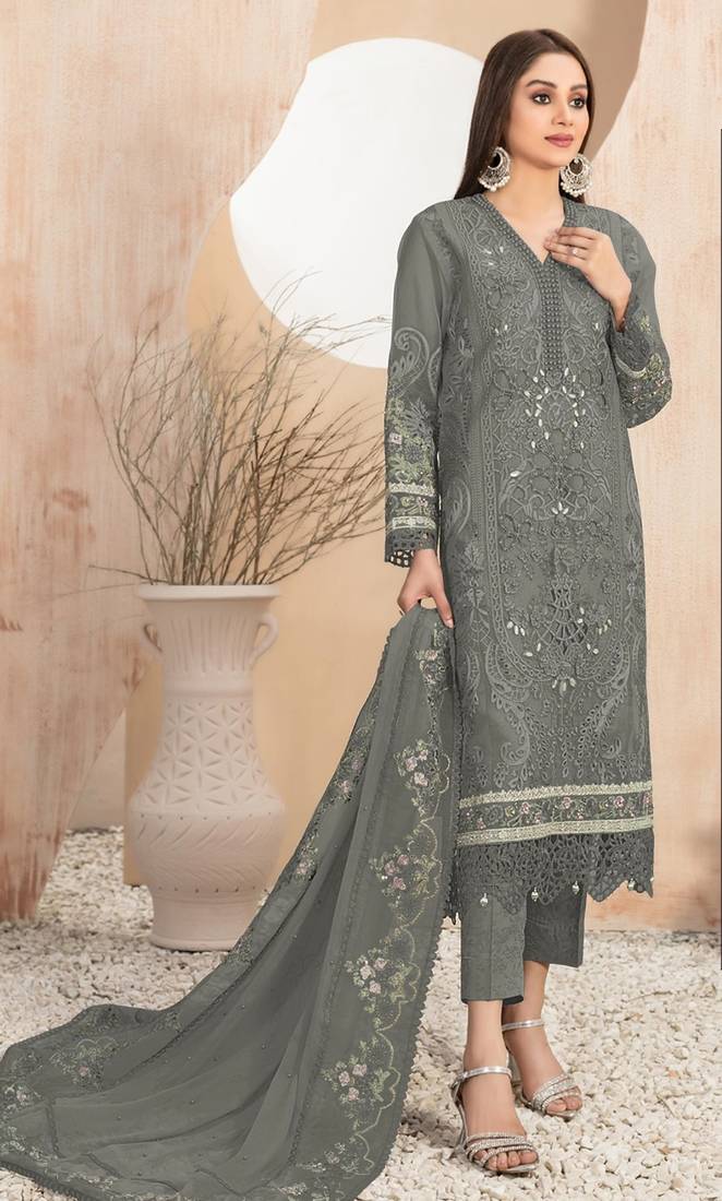 Product Name | Dark Grey Embroidered Faux Georgette Suit | |