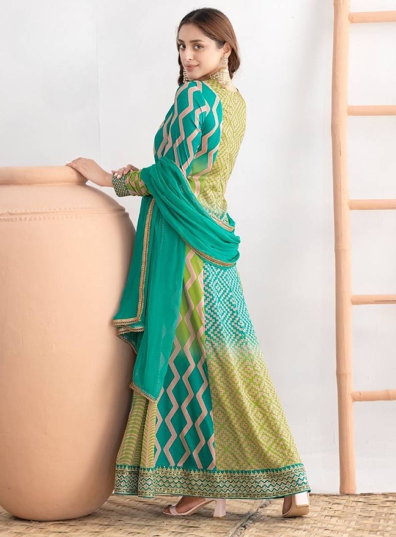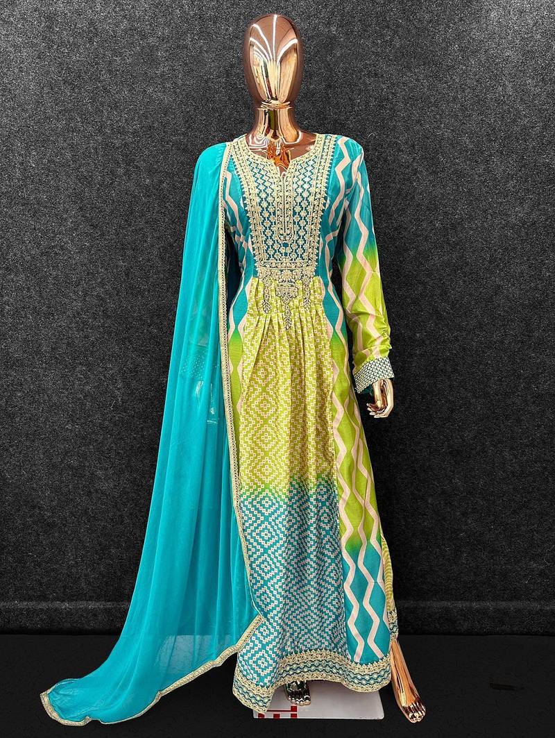 | Product Name | Green Chinon Free Size Stitched Anarkali Suits With Embroidery & Sequence Work | |