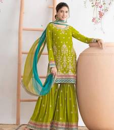 | Product Name | Green Chinon Semi Stitched Sharara Suit With Embroidered Sequence & Mirror Work | |