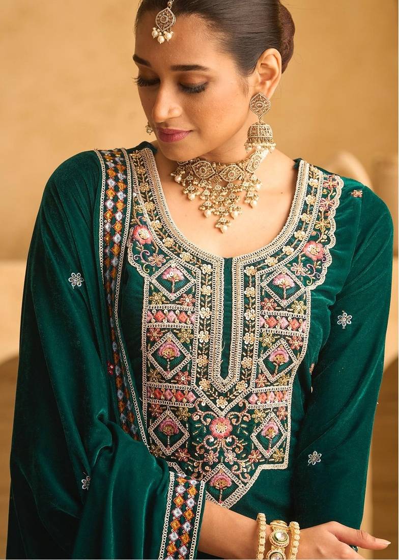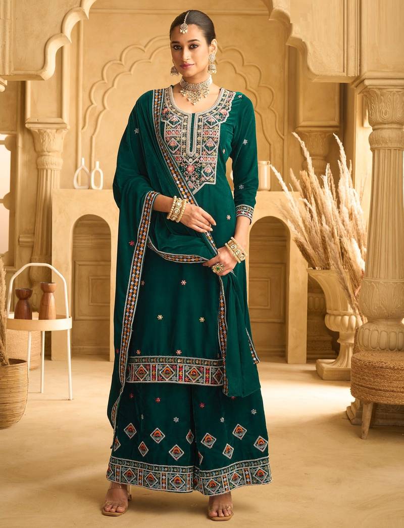 Product Name | Green Embroderied With Beads Velvet Palazzo Suit | |