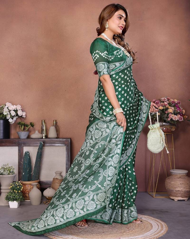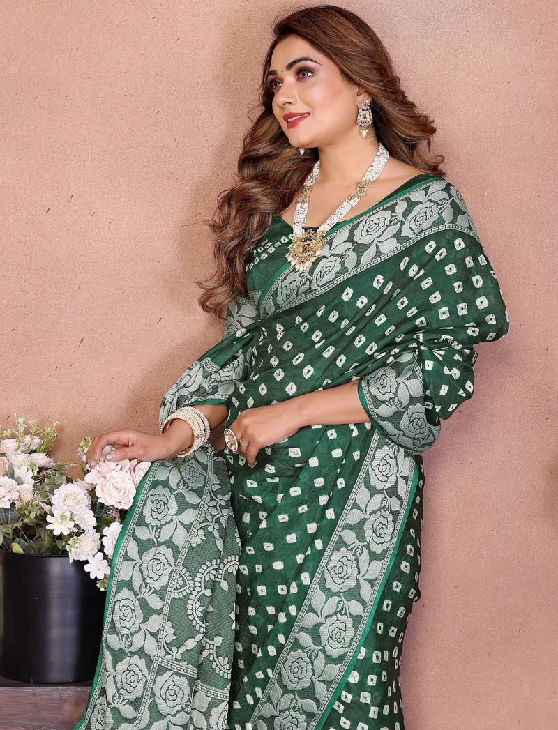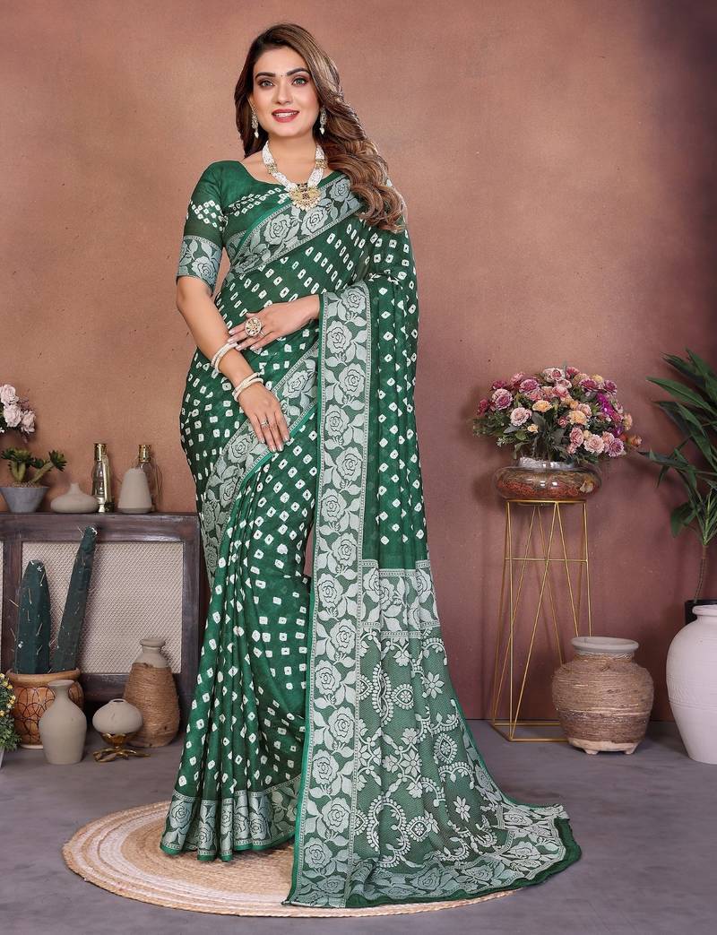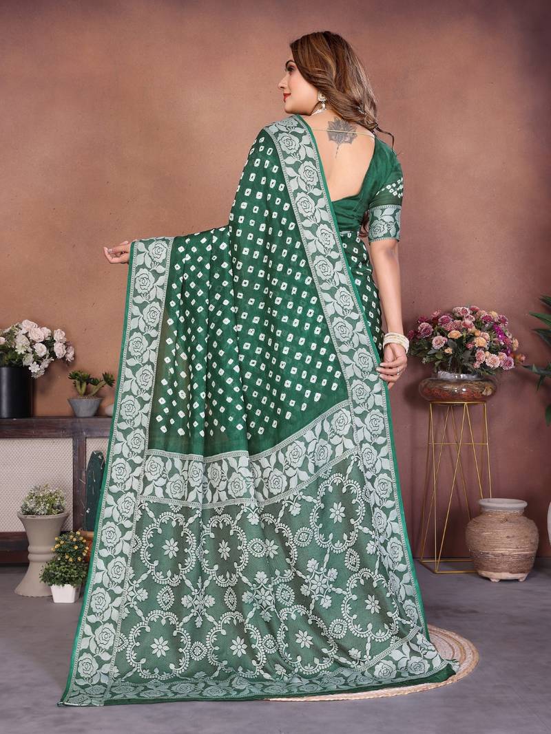 | Product Name | Green Handmade Bhandhej Viscos Silk Blend Saree With Blouse | |