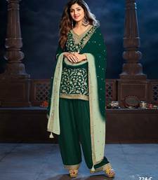 Green silk semi stitched farshi salwar suit with codding dori & sequence work