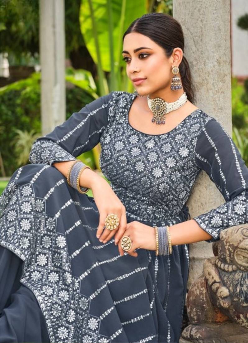 | Product Name | Grey Faux Georgette Semi Stitched Plazzo Suit With Embroidery & Sequins Work | |
