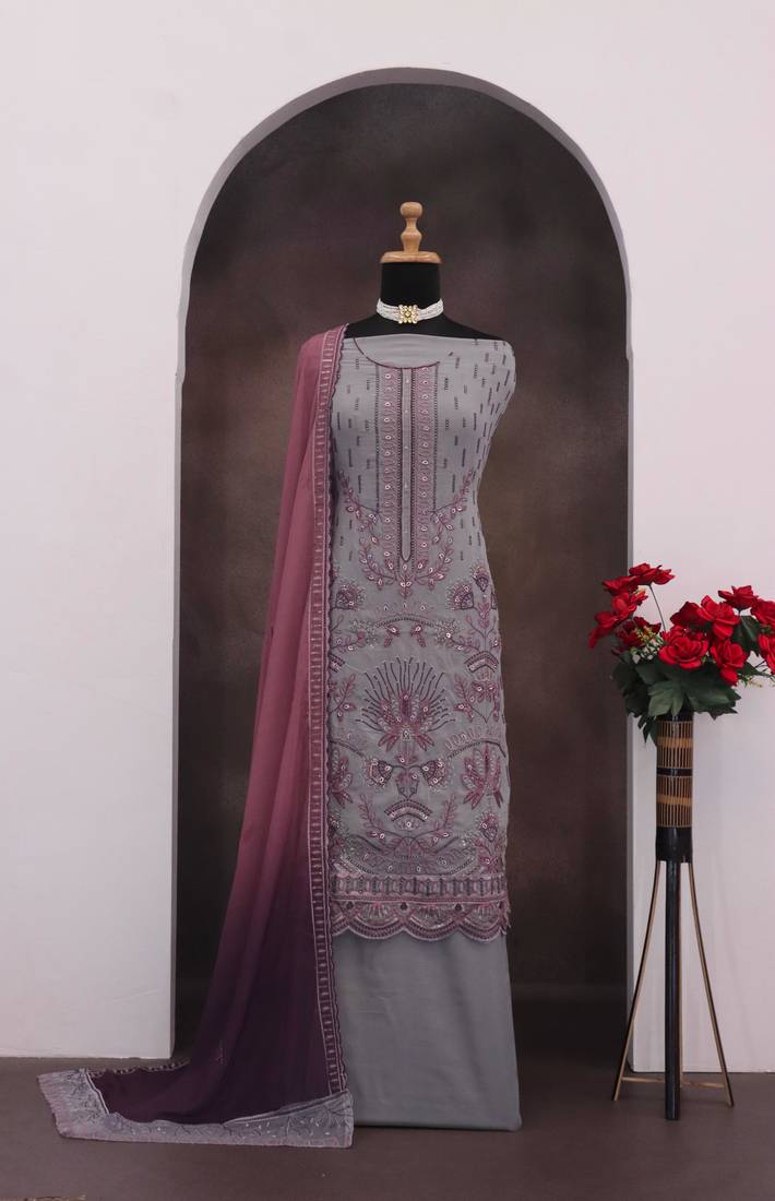 Grey fox georgette semi stitched suit with embroidered sequence work