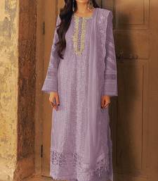 Lavender georgette semi stitched suit with sequence & multi thread work