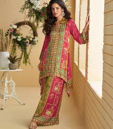 Magenta real premium digital crep silk readymade cord set with mirror work stitched