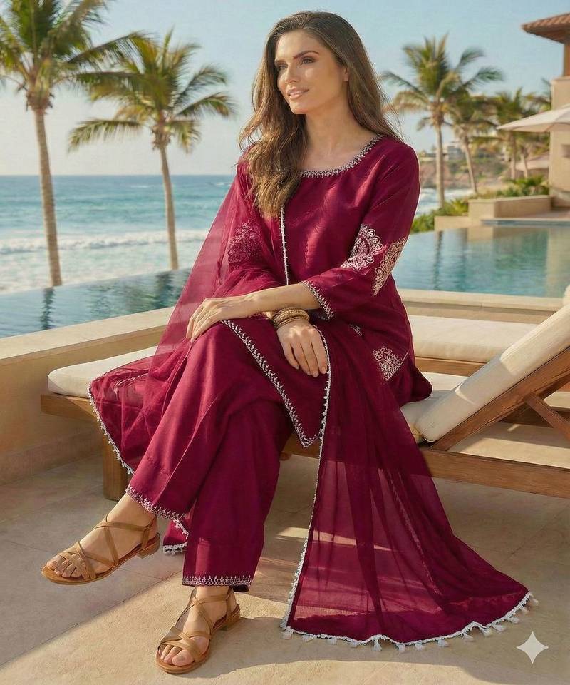 | Product Name | Maroon Crepe Suit With Sequin Embroidery Work | |