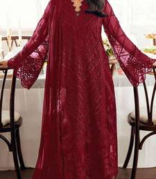 Maroon georgette semi stitched suit with embroidered sequence & khatli work