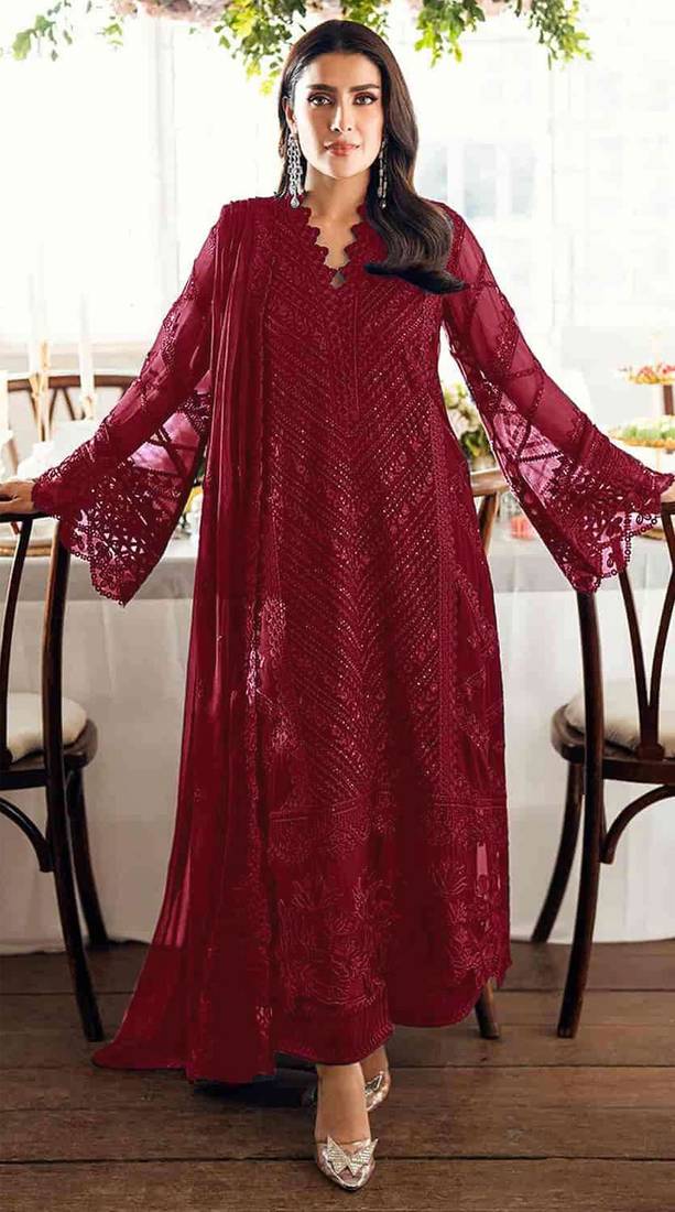 | Product Name | Maroon Georgette Semi Stitched Suit With Embroidered Sequence & Khatli Work | |