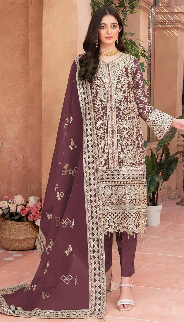 • | Kameez | : | Color- Maroon / Fabric- Organza |