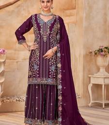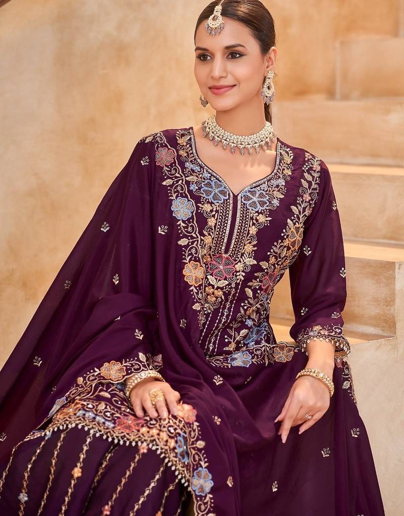 Product Name Maroon Vichitra Silk Readymade Plazzo Suit With Embroidery & Lace Work