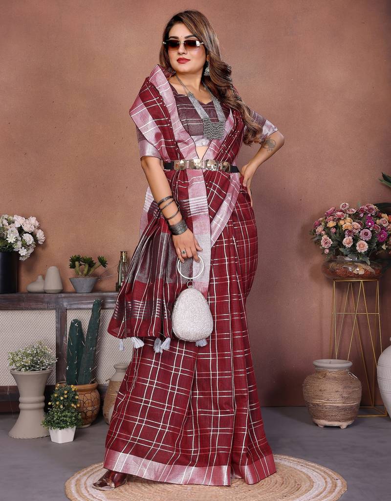 | Product Name | Maroon Weaving Linen Cotton Saree With Blouse | |