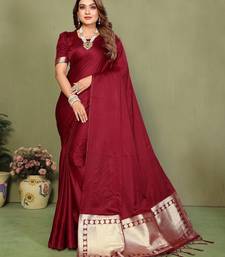 Maroon zari weaving work satin silk saree with blouse