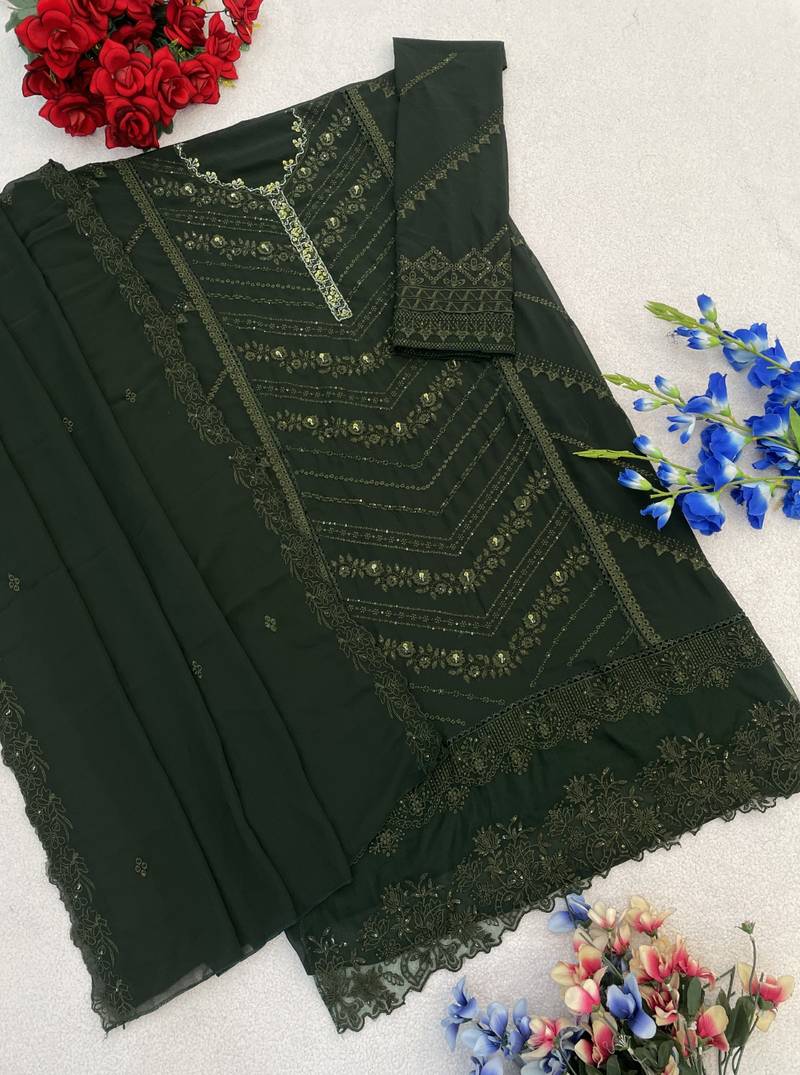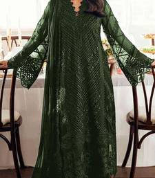 Mehendi georgette semi stitched suit with embroidered sequence & khatli work