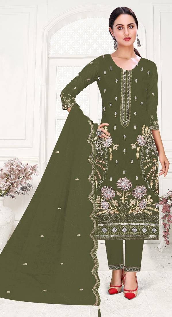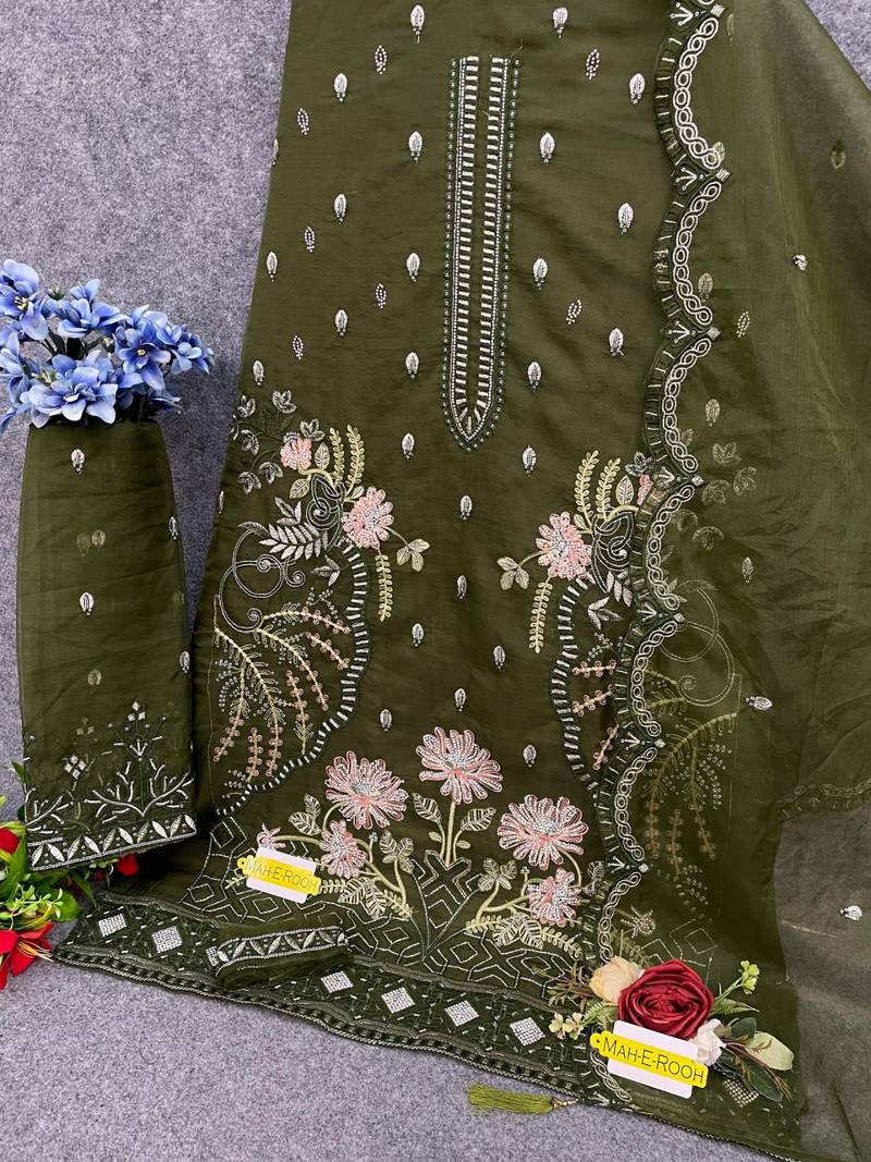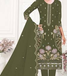 • | Kameez | : | Color- Mehendi / Fabric- Organza |
