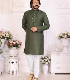 Mehendi silk straight kurta with nack mirror work