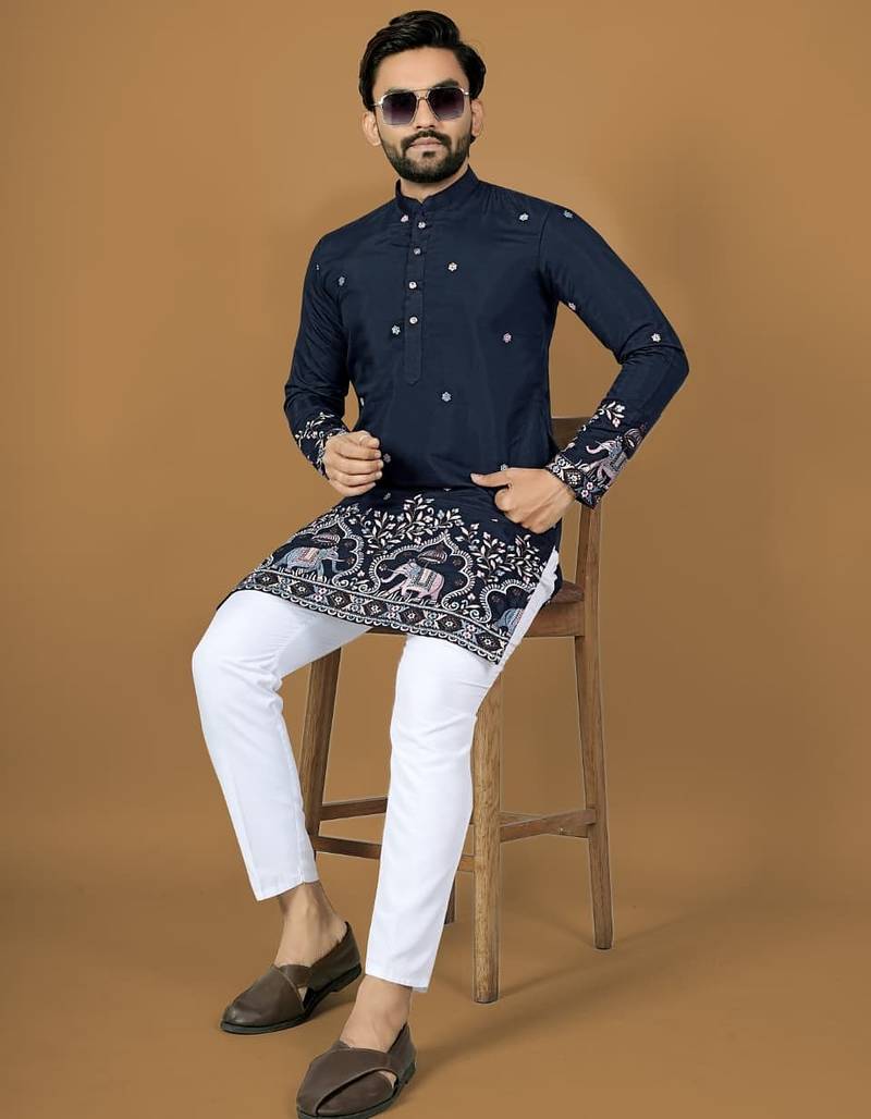 | Product Name | Navy Embroidery Silk Straight Kurta | |