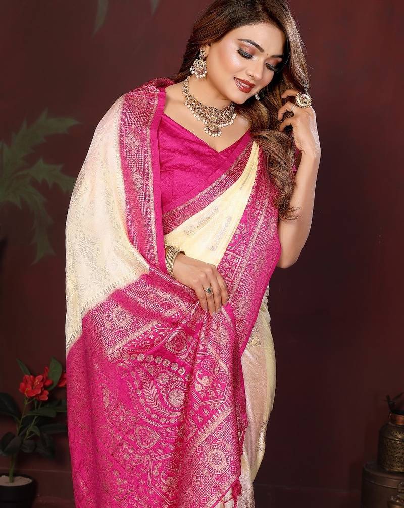 | Product Name | Off White Zari Butta Work Satin Silk Saree With Blouse | |