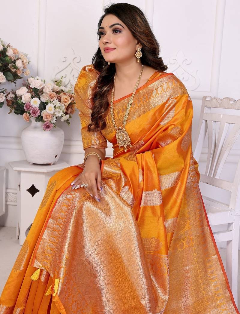 | Product Name | Orange Weaving Soft Organza Saree With Blouse | |