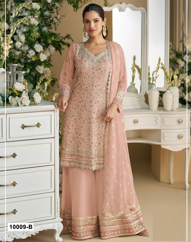 | Product Name | Peach Embroderied Faux Georgette Palazzo Suit | |
