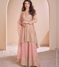 Peach georgette readymade suit with codding dori & sequence work - full stitched free size