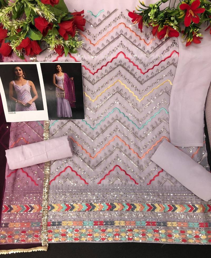 | Product Name | Peach Georgette Semi Stitched Suit With Embroidered Thread & Sequence Work | |