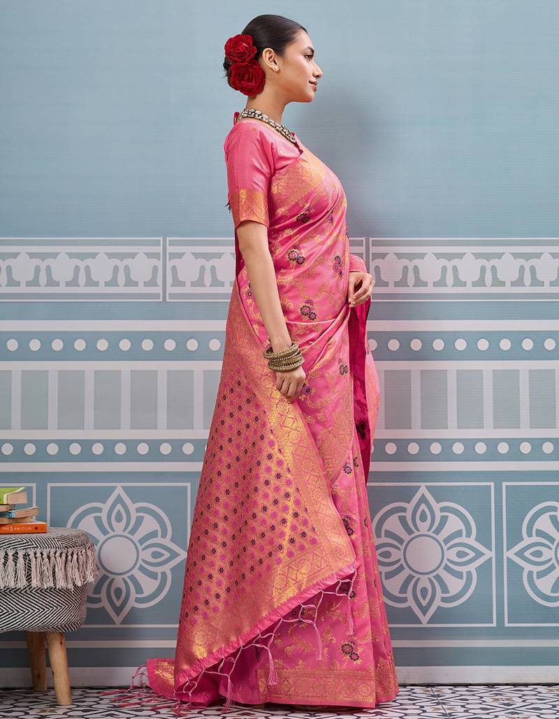 | Product Name | Peach Soft Art Silk Saree With Woven Work With Blouse | |