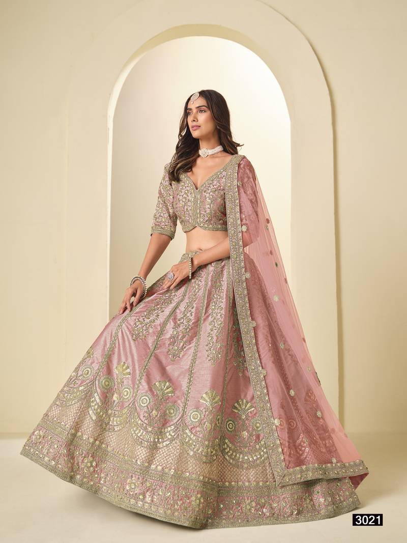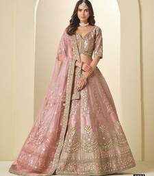 Pink art silk semi stitched lehenga choli with heavy embroidery work