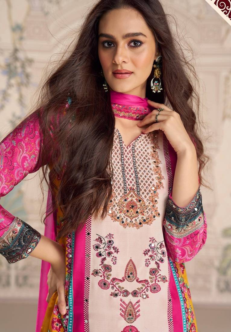 | • | Dupatta | : | Color- Pink / Fabric- Silk |