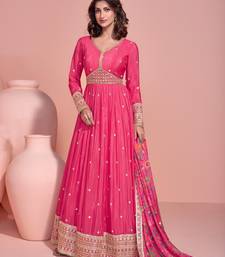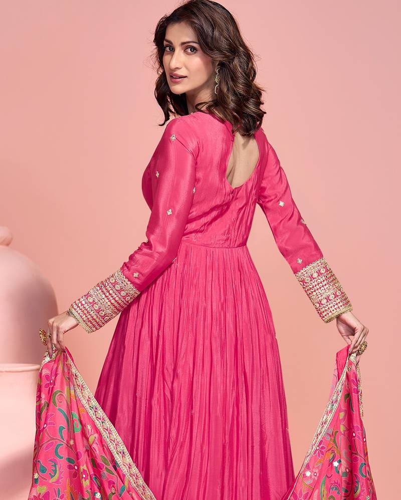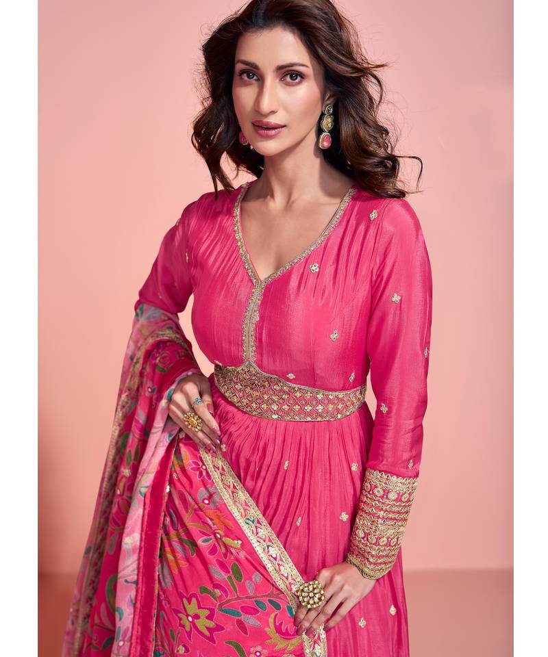 Pink embroderied silk anarkali suit - full stitched free size