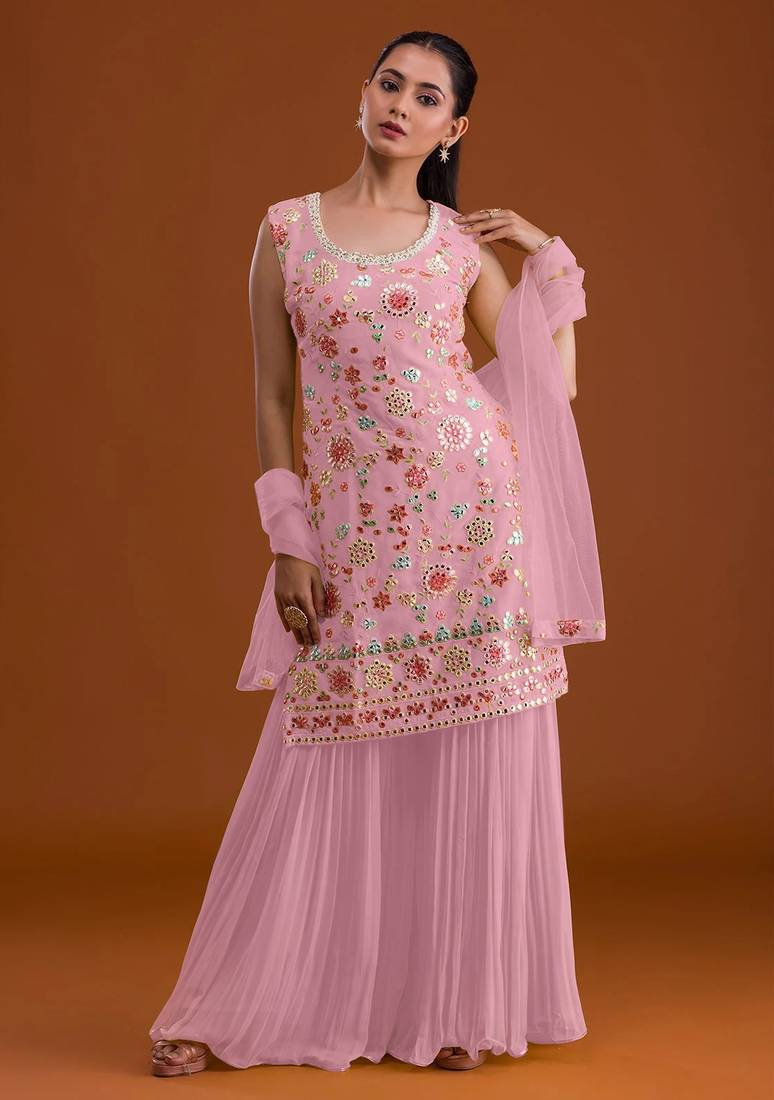 | Product Name | Pink Georgette Semi Stitched Suit With Embroidered Multi Work | |