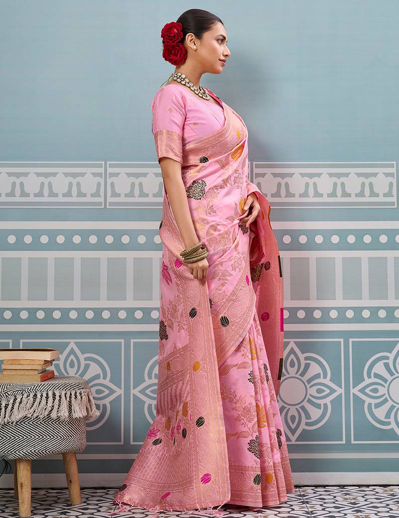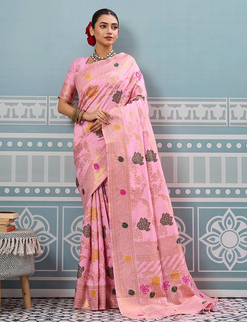 | Product Name | Pink Soft Art Silk Saree With Woven Work With Blouse | |