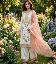 Pink & white gimmy chu readymade suit with embroidery & moti work stitched