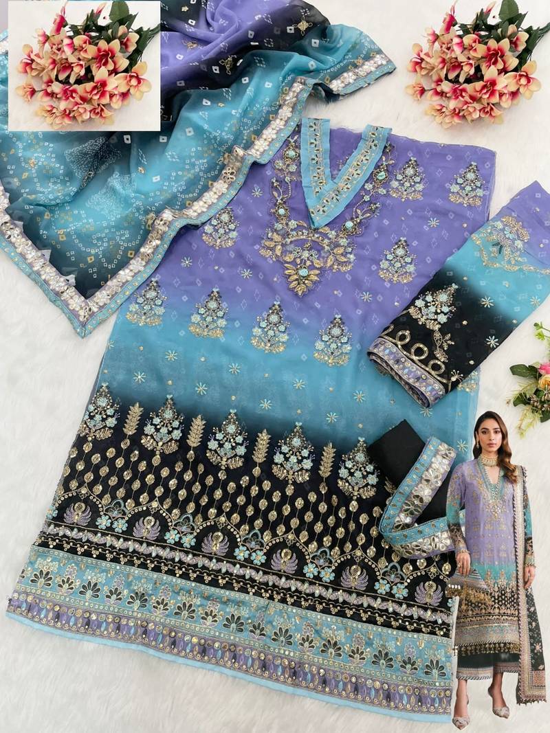 | • | Dupatta | : | Color- Blue / Fabric- Faux Georgette |