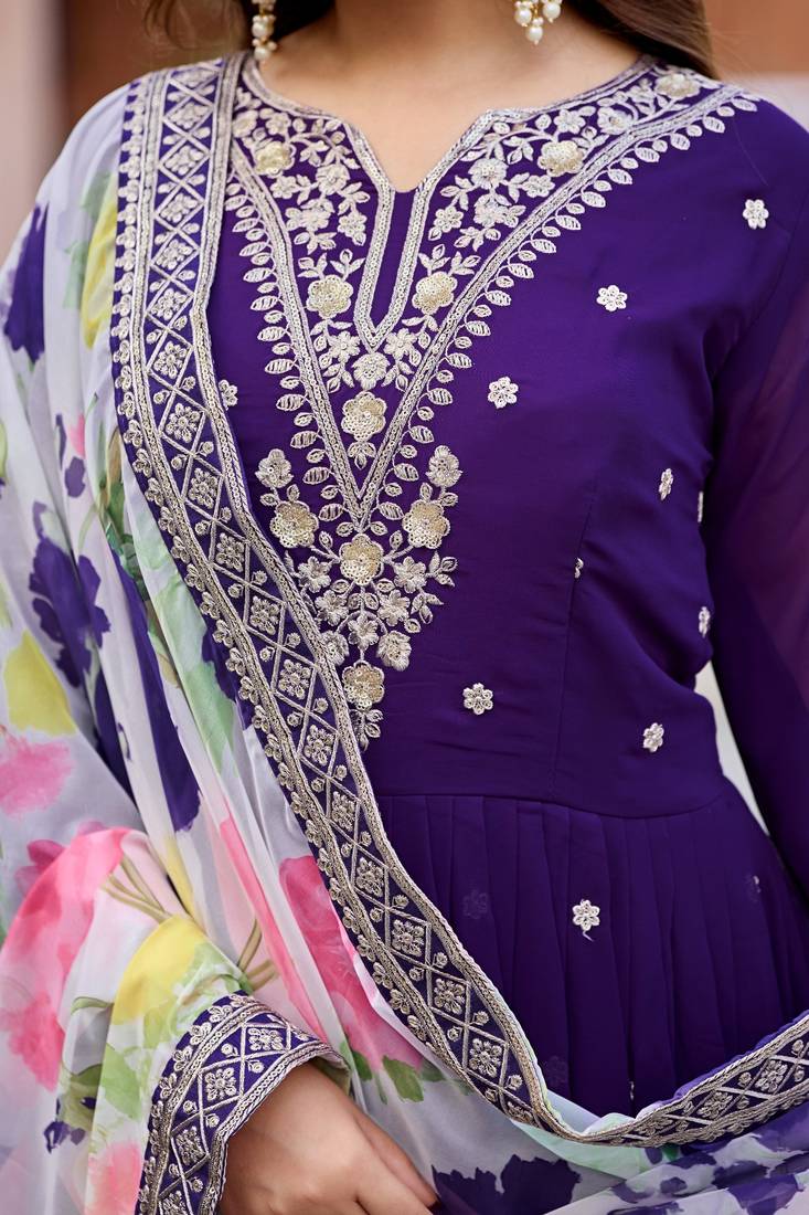 Purple embroidered georgette stitched anarkali suit with dupatta