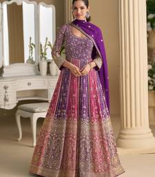 Purple georgette embroidered sequins anarkali suit - full stitched free size
