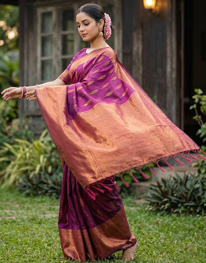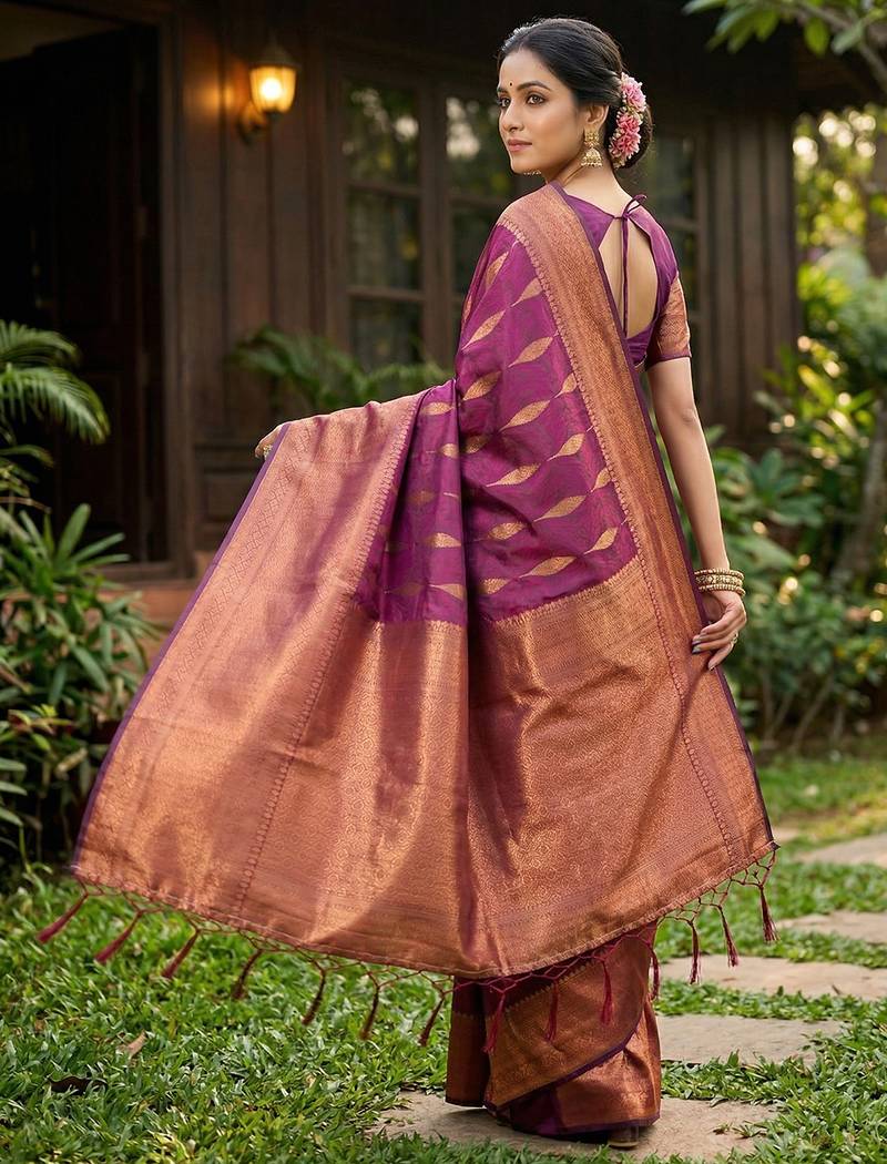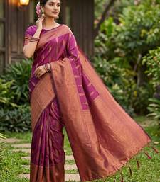 Product Name Purple Silk Blend Woven Saree With Blouse