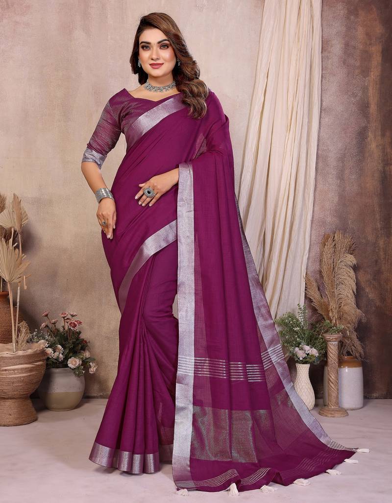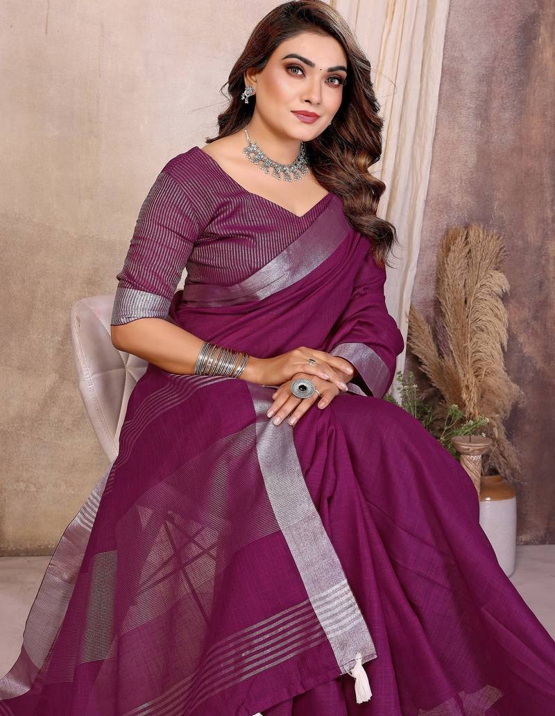 | Product Name | Purple Weaving Linen Cotton Saree With Blouse | |
