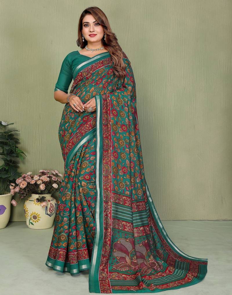 | • | Saree | : | Color- Teal / Fabric- Cotton |
