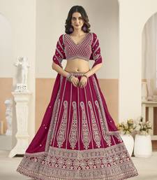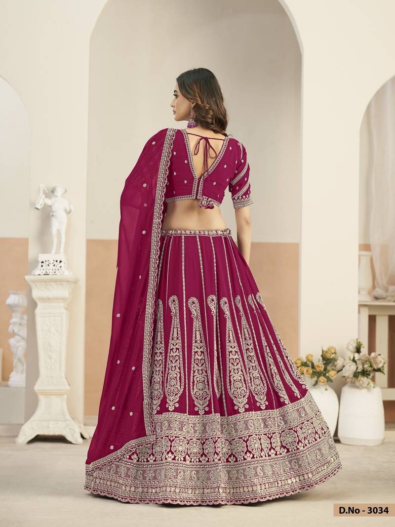Rani pink faux georgette semi stitched lehenga choli with sequence work