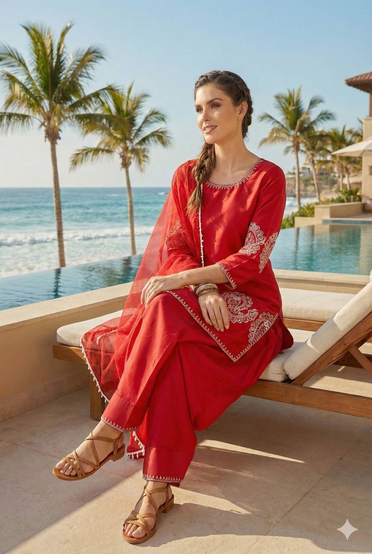 | Product Name | Red Crepe Suit With Sequin Embroidery Work | |