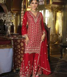 | Product Name | Red Heavy Chinon Readymade Plazzo Suit With Heavy Embroidery Work Full Stitched Free Size | |