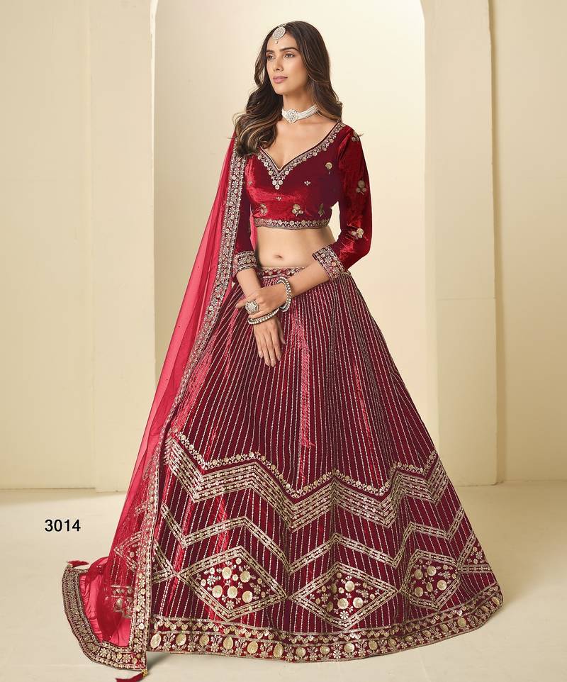 | Product Name | Red Ice Velvelt Semi Stitched Lehenga Choli Witn Embroidery Work | |