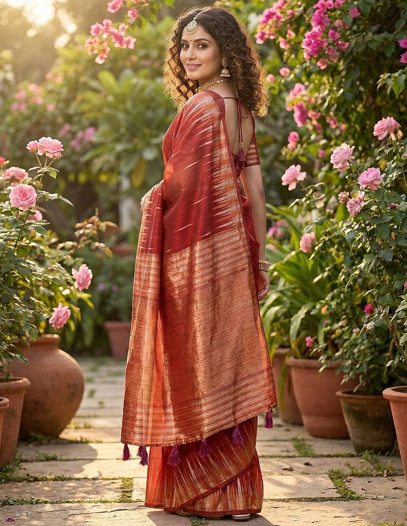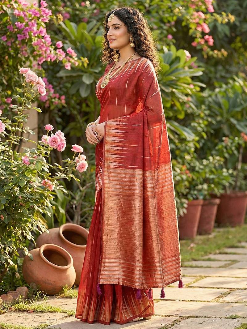 | Product Name | Red Linen Woven Work Saree With Blouse | |