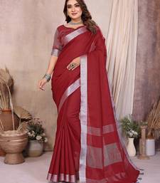 Red weaving linen cotton saree with blouse